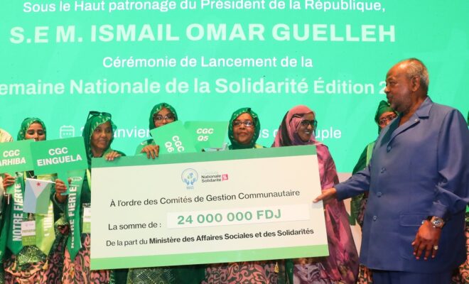 Furthermore, the Minister of Social Affairs and Solidarity presided over another ceremony in Obock dedicated to women’s empowerment, a key pillar of the national social development strategy. At this event, official accreditations were presented to community management committees, while certificates were awarded to affinity-based mutual aid groups, recognizing their central role in promoting solidarity, economic independence, and social cohesion.
